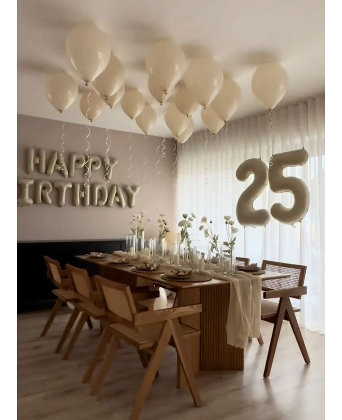 Celebrate a 25th birthday in style with an expertly curated decoration set featuring a stunning table arrangement of fresh flowers paired with vibrant helium balloons. This combination creates an elegant and festive atmosphere, perfect for marking this special milestone. The floral centerpiece adds natural beauty and charm, while the helium balloons bring a playful and celebratory touch, ensuring your event is memorable and visually captivating. Ideal for both intimate gatherings and larger parties, this decoration set elevates the birthday experience with sophistication and joy.